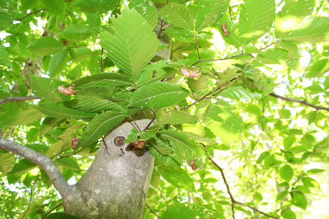 | Many male Magicicada septendecims gathered together on this tree and created a chorusing center. |